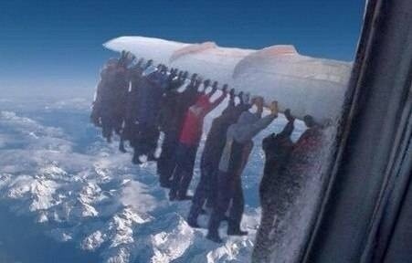 На улице -52С. У самолета замерзло шасси. Тягач не смог выкатить самолет на ВПП. Русские не сдаются!)
